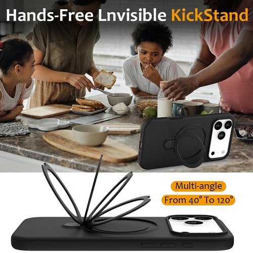11790202501 For iPhone 17 Pro iCharm Silicone MagSafe Stand Case, Black