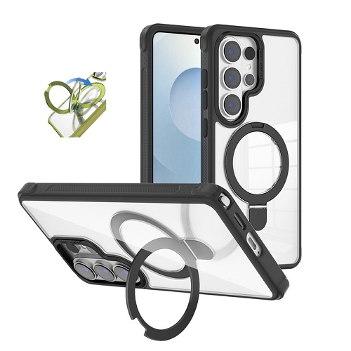 13420519601 Galaxy S26 Clear Metal Frame Rotable MagSafe Stand Armor, Black