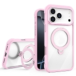 IPHONE 17 PRO MAX CLEAR METAL FRAME MAGSAFE STAND ARMOR, PINK