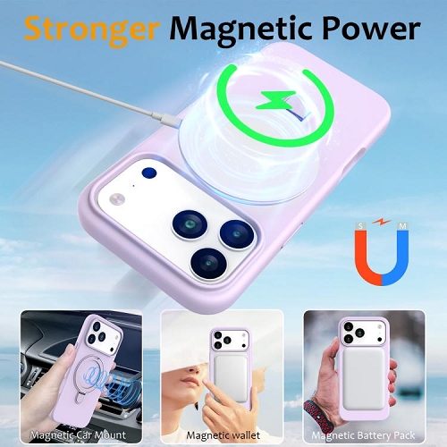 11790202545 For iPhone 17 Pro iCharm Silicone MagSafe Stand Case, Light Purple