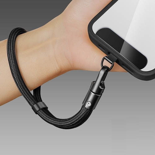 UNIVERSAL SHORT ADJUSTABLE LANYARD WRISTLET HAND STRAP, BLACK